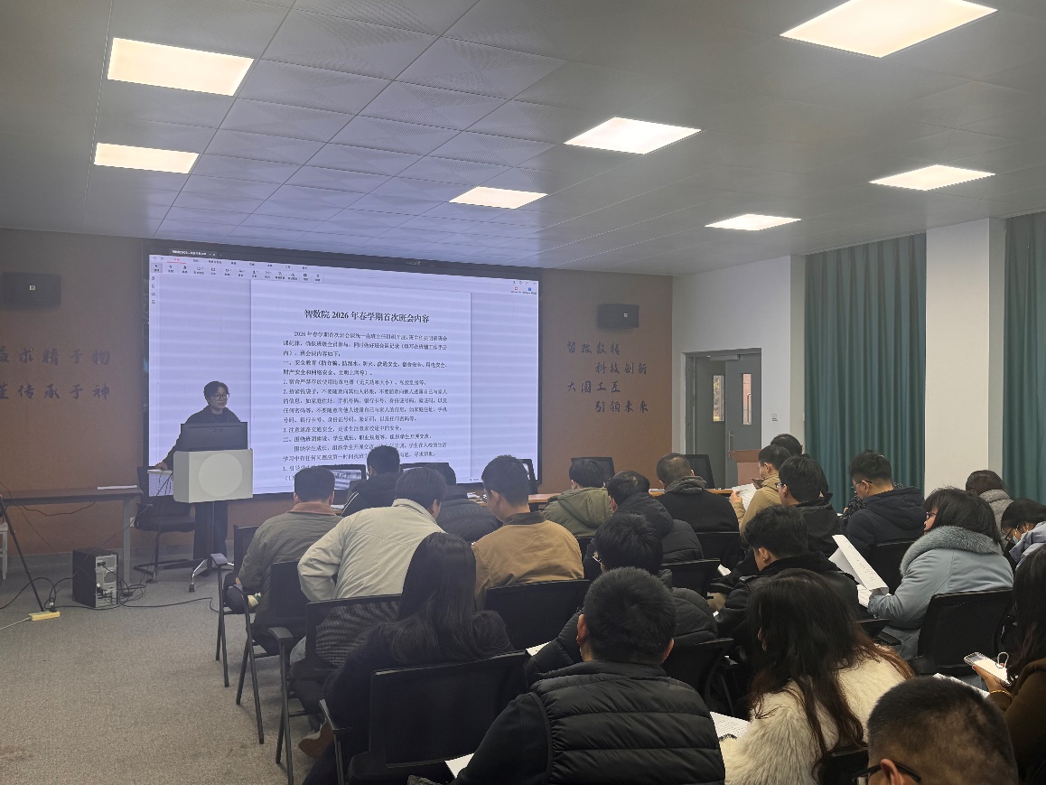 精细培训强队伍,锻造学工铁军。 班主任是学生成长的引路人,是连接学校与家庭的桥梁。智数院全体班主任、辅导员、教育长参加了由学校统一组织的心理安全工作培训会,此次培训会聚焦后疫情时期学生心理特点,通过专家讲座与案例研讨,为一线学生工作者提供了科学有效的指导。在班主任工作例会上,学工办各位老师围绕班级建设、日常教育管理、心理健康精准帮扶、安全底线守护等主题展开专题培训。提升班主任队伍的专业素养和育人能力。会议强调,班主任要做守土尽责的“责任人” ,严格落实各项管理制度,及时掌握学生思想动态;更要当暖心贴心的“引路人”,把“爱的教育”融入严格管理中,通过耐心倾听、真诚沟通、及时帮助,成为学生成长道路上可信赖的“同路人”。培训现场气氛热烈,班主任们纷纷表示,将以更饱满的热情、更专业的素养投入到新学期工作中。